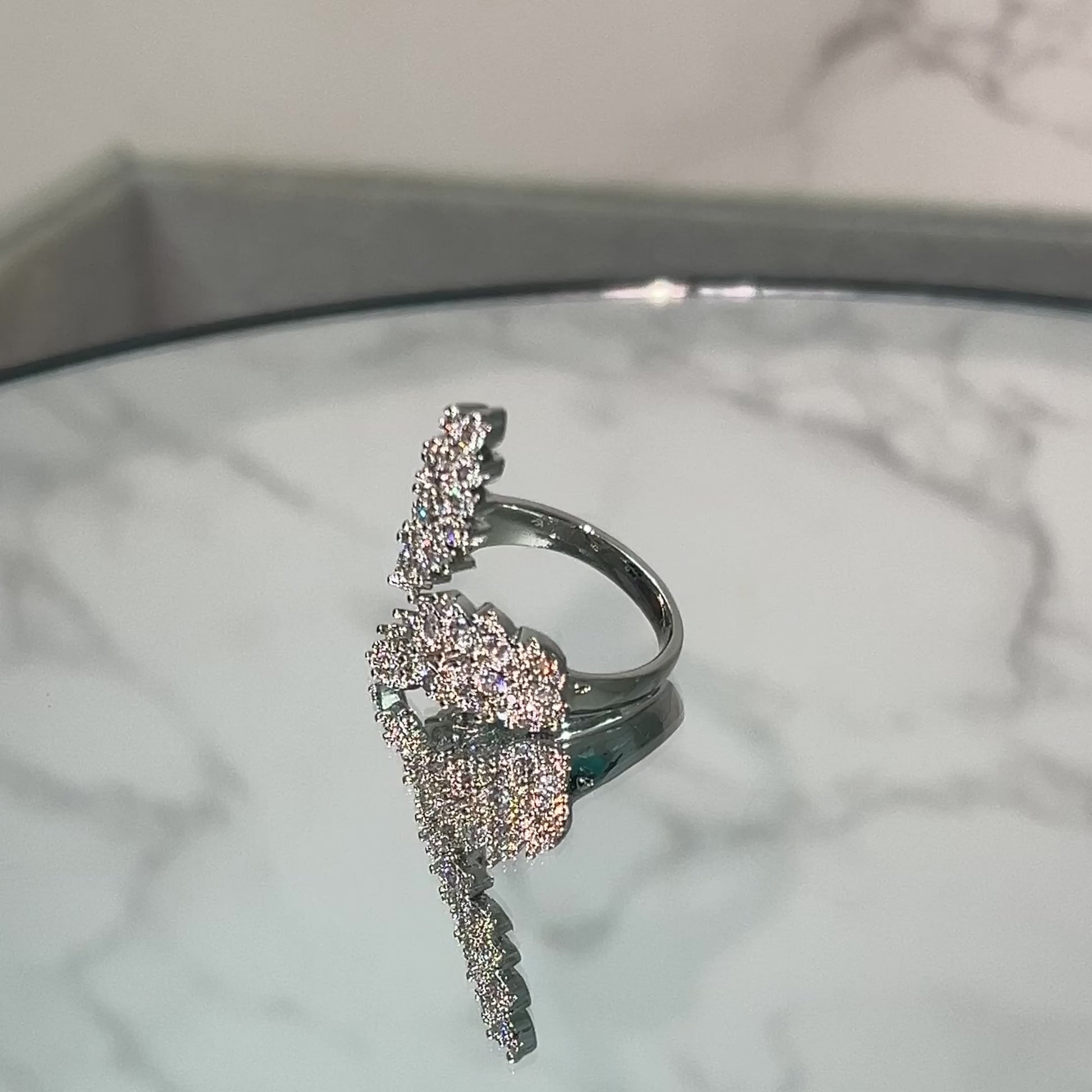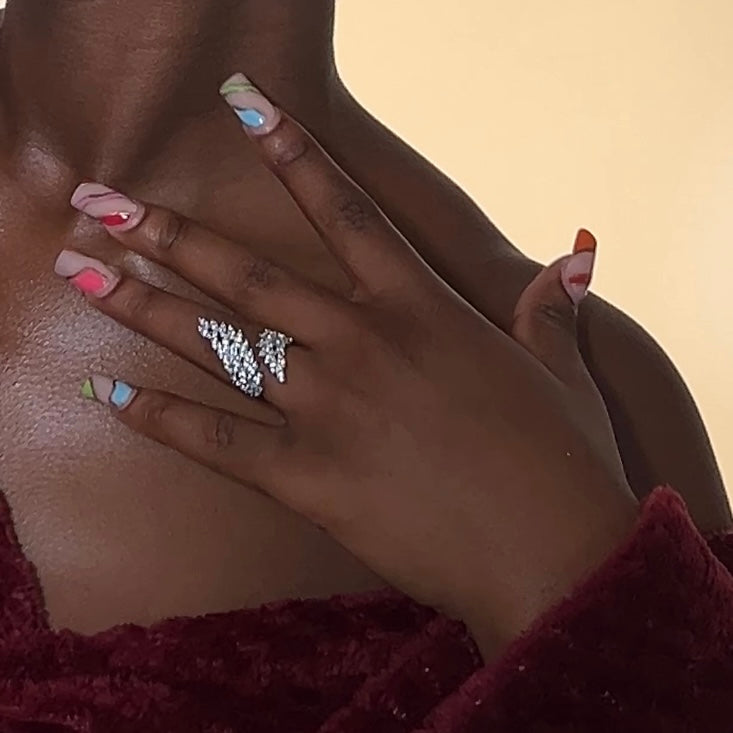 Adorn your fingers with the beautiful Ambrosia cocktail Ring . Made with cz stones and with a sparkle that will get you noticed for all the right reasons