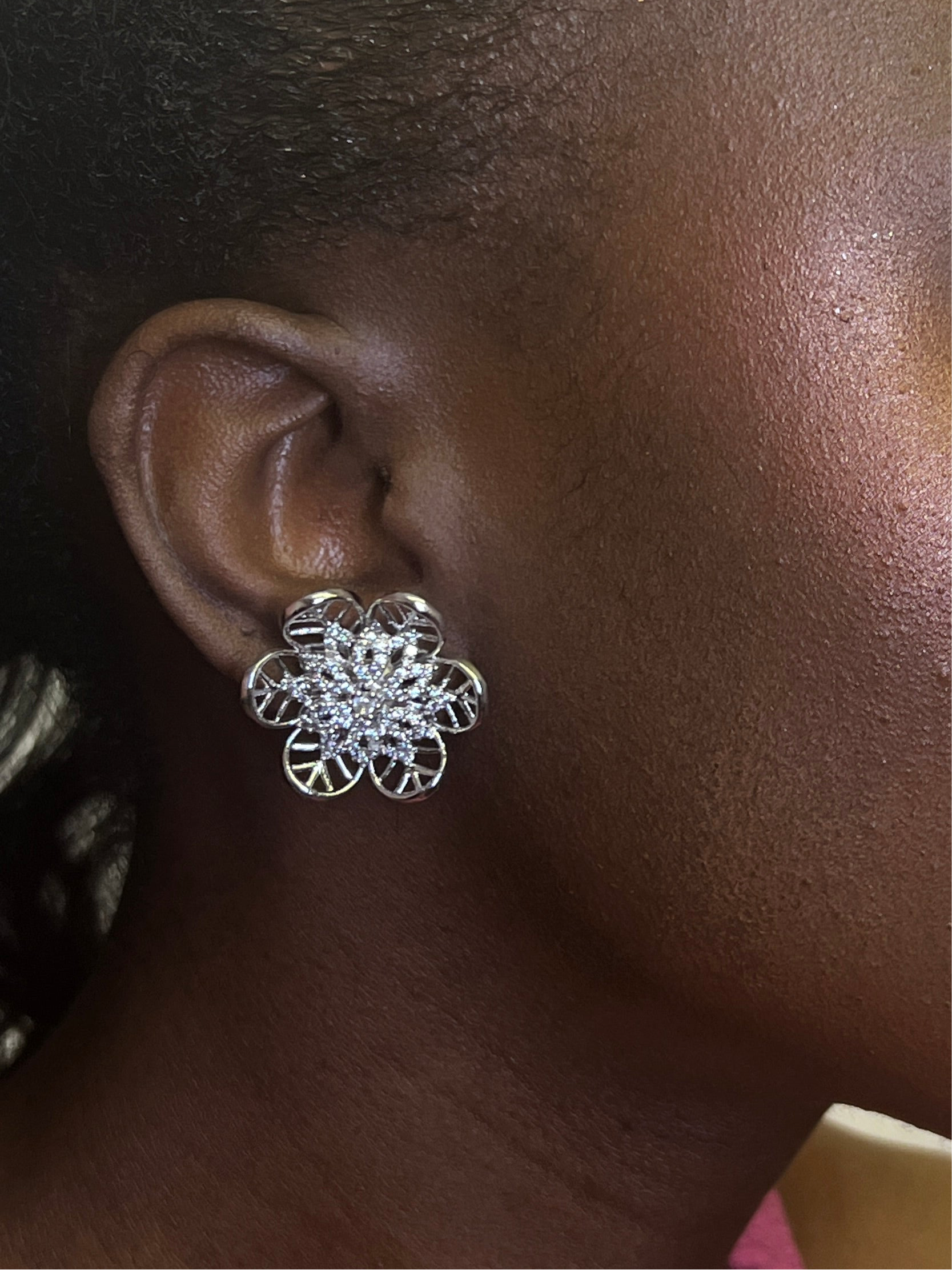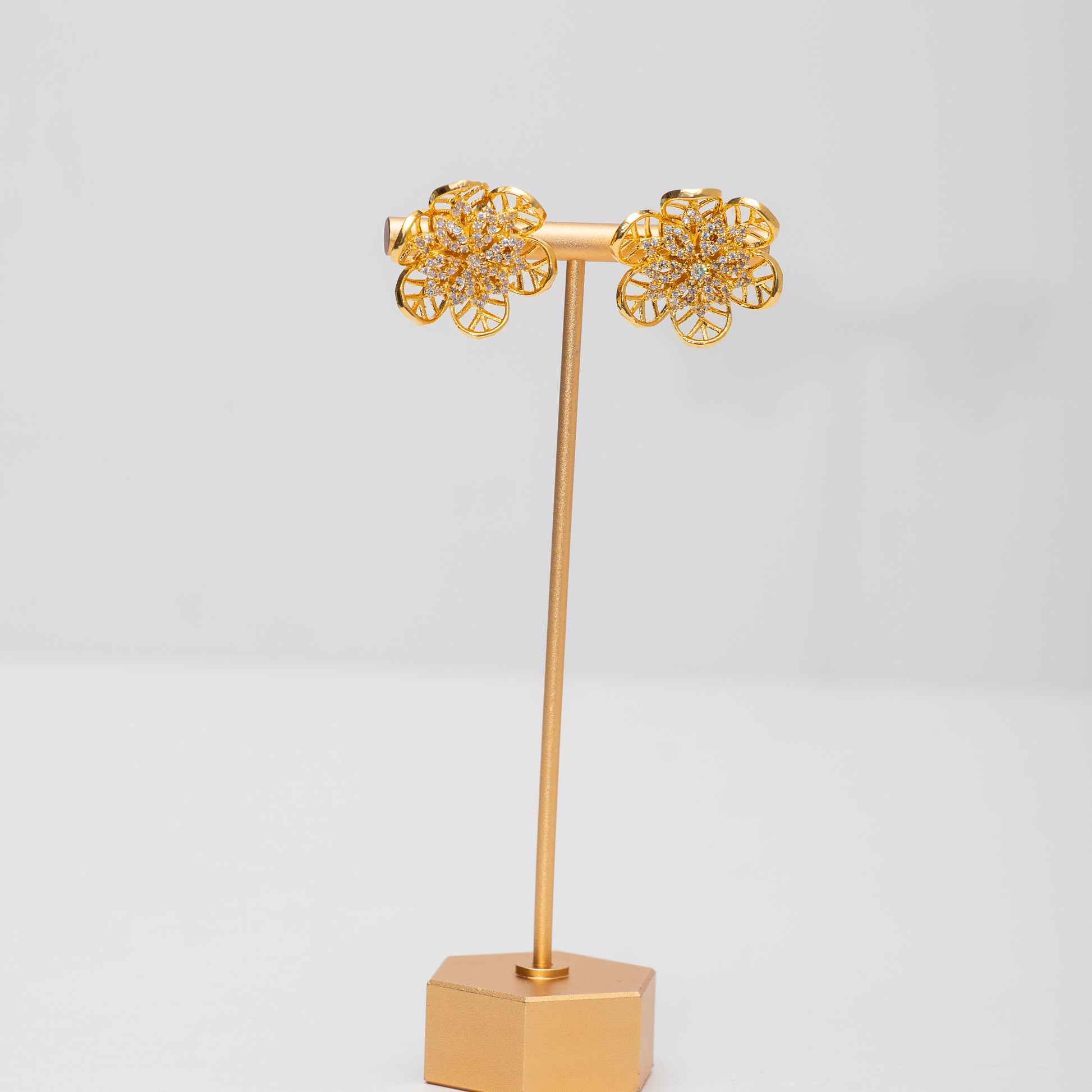 Elevate your look with Ana Rose, a pair of floral-inspired stud earrings adorned with dazzling cubic zirconia stones. Crafted with sophistication, these earrings add a touch of elegance to any ensemble.