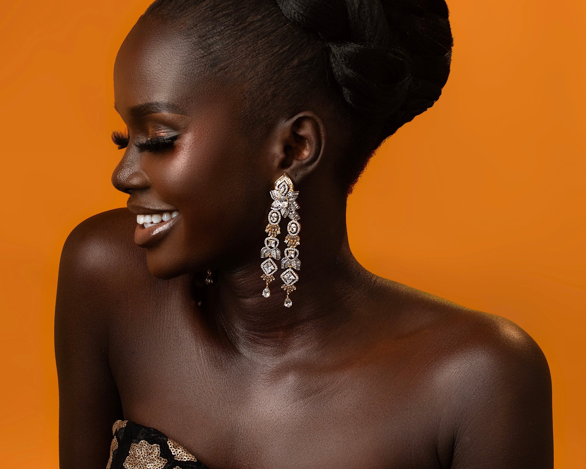 - Long, elegant drop silhouette for maximum glamour and presence