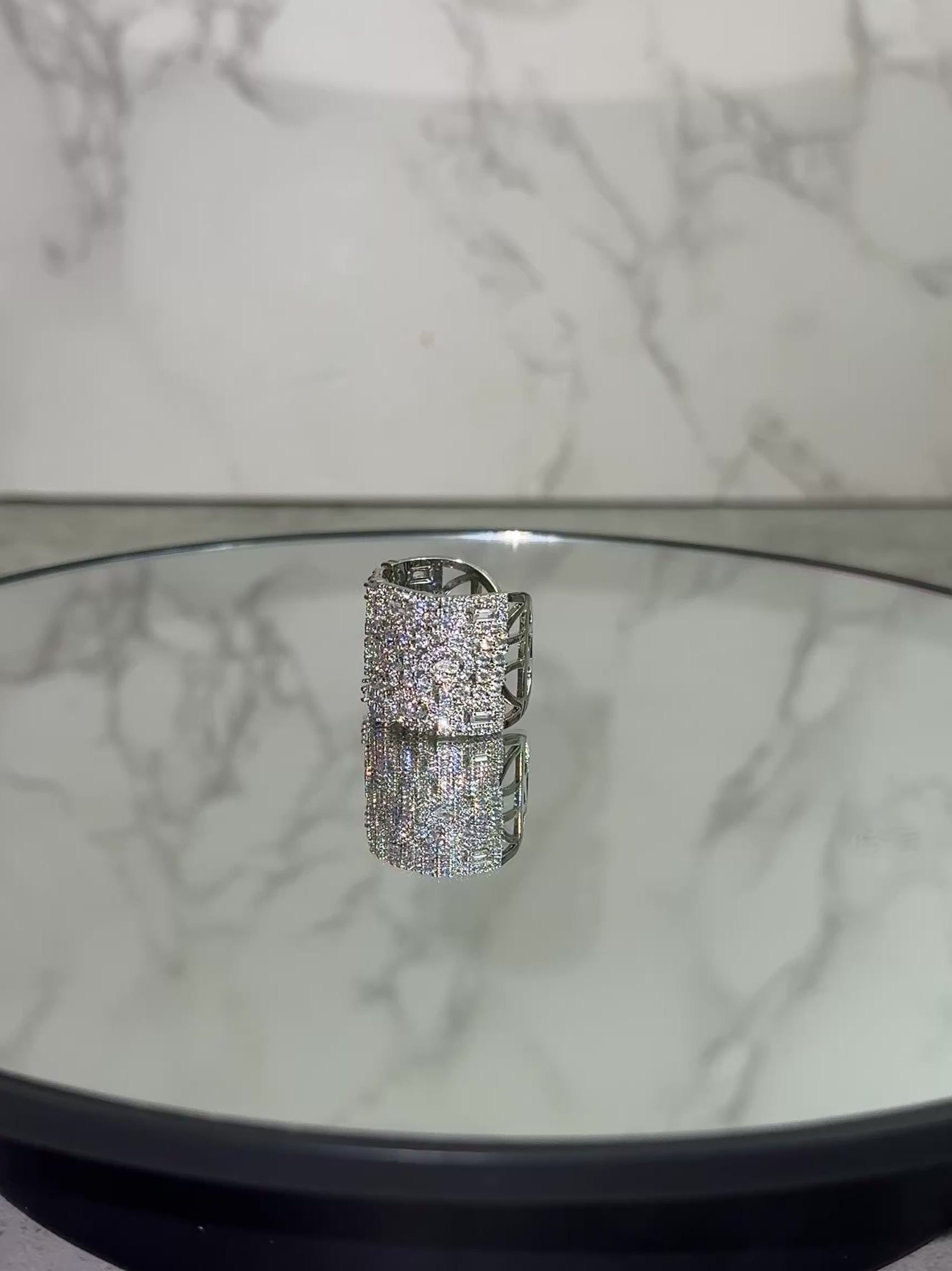 Command attention with this dazzling statement ring, expertly crafted to exude timeless luxury. Featuring rows of high-grade cubic zirconia stones that shimmer with every movement, this wide-band design offers the perfect balance of elegance and boldness. Its skin-friendly finish ensures lasting comfort, while its brilliance rivals that of fine diamonds — without the extravagant price tag. Ideal for brides, party guests, and lovers of refined sparkle.