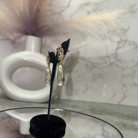 Clear drop stone with yellow gold plaited and AAA CUBIC ZIRCONIA STONE The drop stone design is timeless and perfect for any occasion, making these earrings an ideal choice for your jewelry collection.