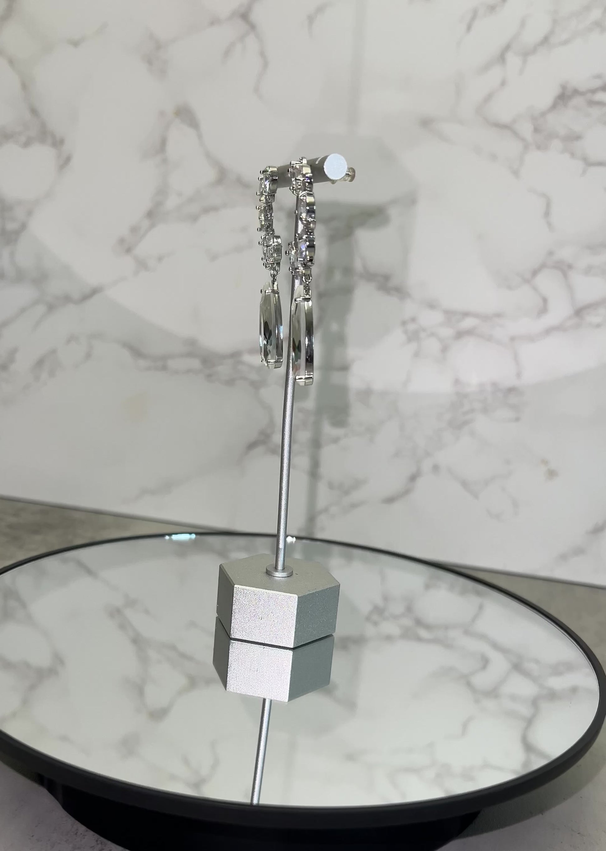These Crescent Earrings are perfect for those looking to add a modern touch to their look. Crafted with silver and featuring a half circle drop clear stone design, these earrings will add an elegant sparkle to any ensemble. They're the perfect combination of timeless style and modern sophistication