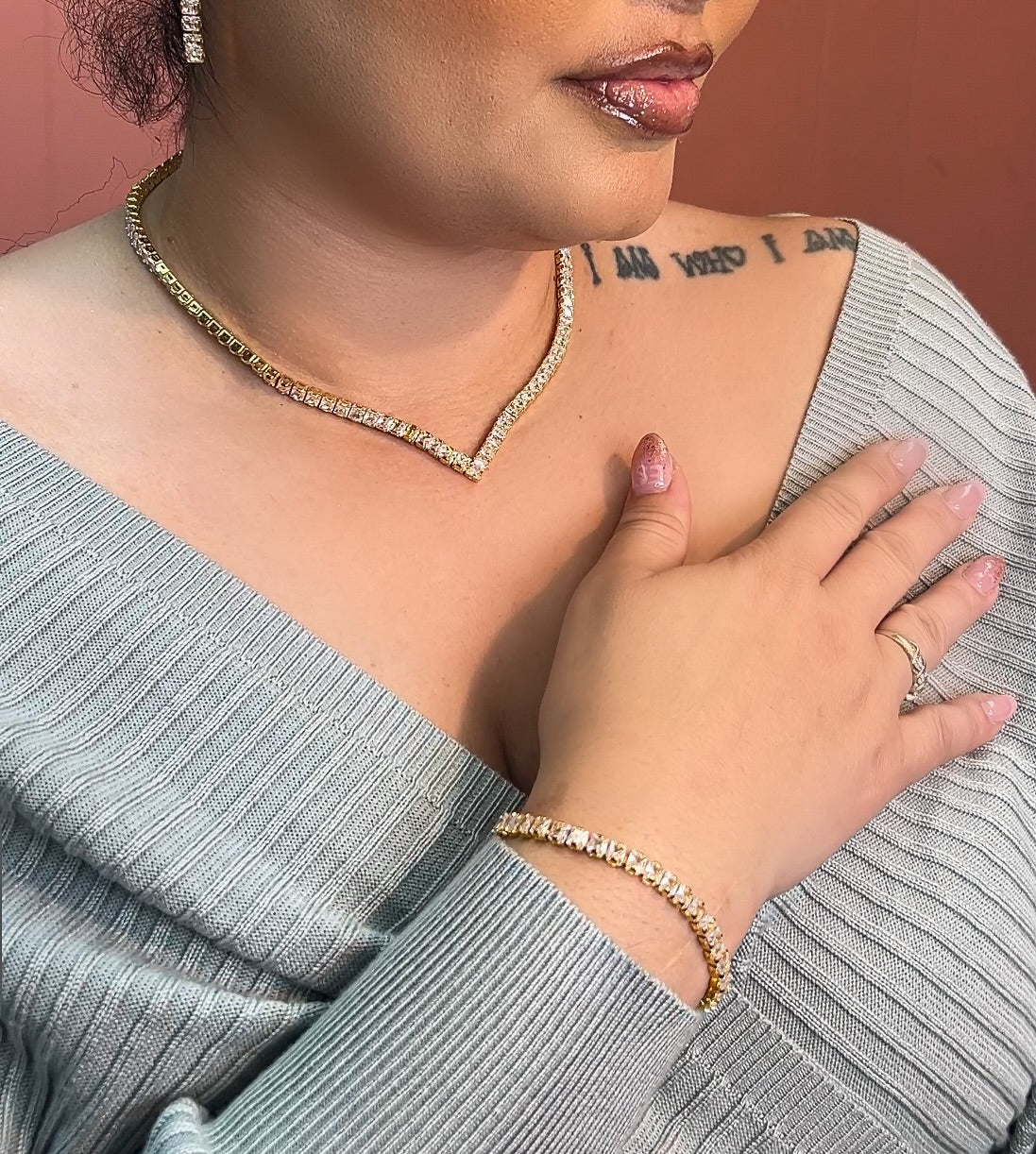 A stunning and dainty Cubic Zirconia stones Bridal neck piece and earring set. For the minimalist yet chic and exquisite aesthetic. This set is beautiful and versatile and can be worn in different ways .