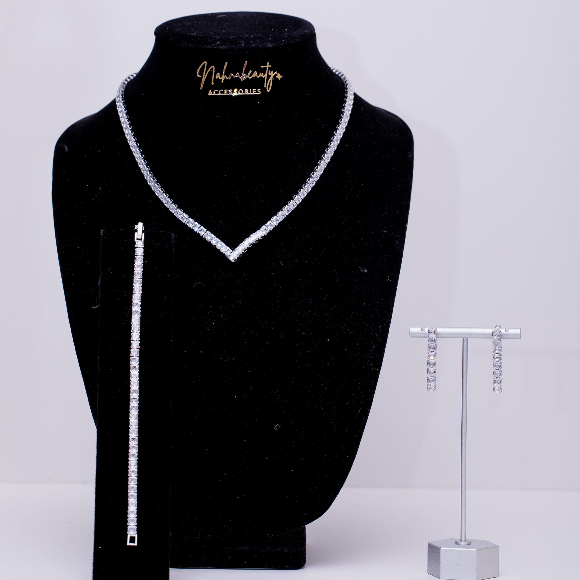Evana 3 pcs Dainty Cubic Zirconia stones Bridal neckpiece, bracelet and earring set