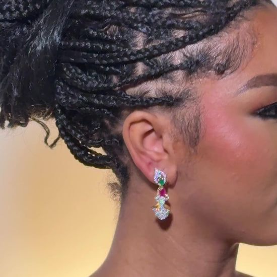 The Ivet Indian Multicolor CZ Earrings are a stunning addition to any jewelry collection. Featuring ruby red and green stones,18 karat gold plated , made with American Diamonds. these earrings are perfect for special occasions. Their unique multi-color design adds a touch of sophistication and elegance to any outfit. Elevate your style with these beautiful earrings today.