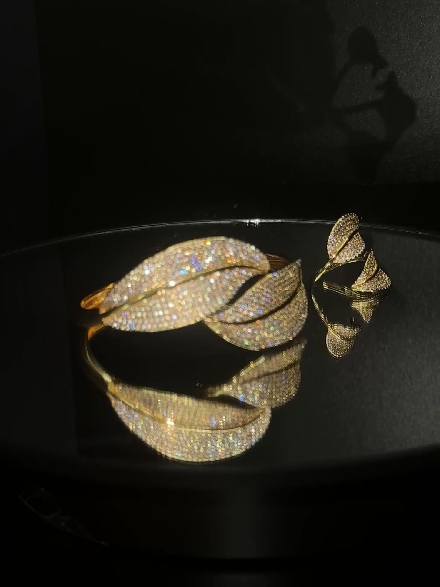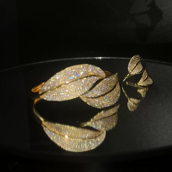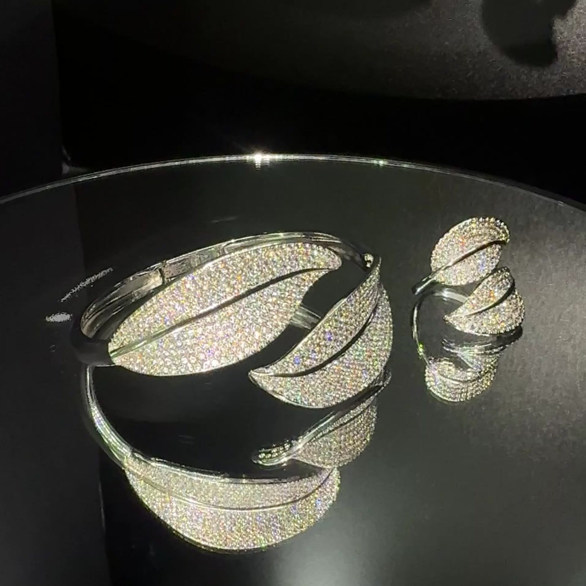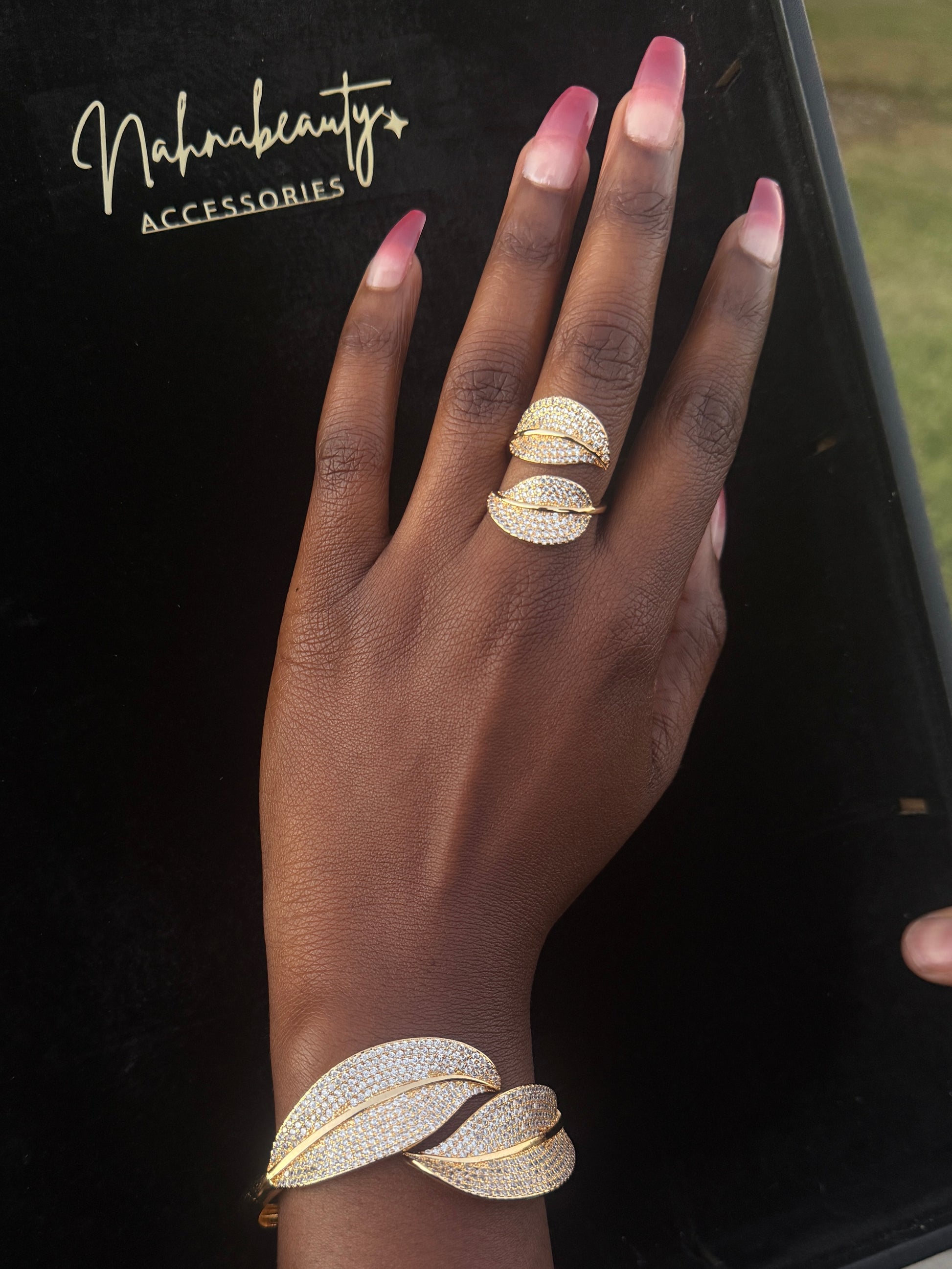 Cubic zirconia bangle and ring set . Available in silver and gold . Size Adjustable