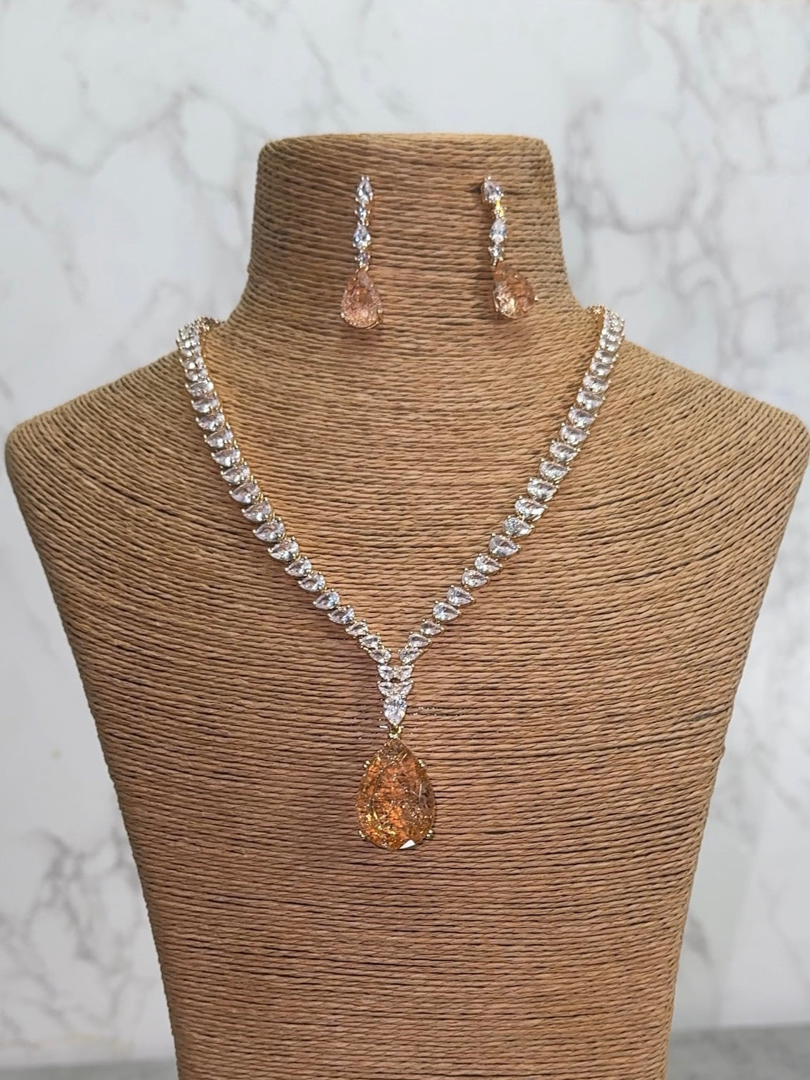The MIMI CZ SET is the epitome of elegance and style. Featuring a stunning rose gold CZ STONE with gold hardware and delicate white stones, it's the perfect accessory for any special occasion. With its exquisite design, this set is sure to make a statement and elevate your overall look.