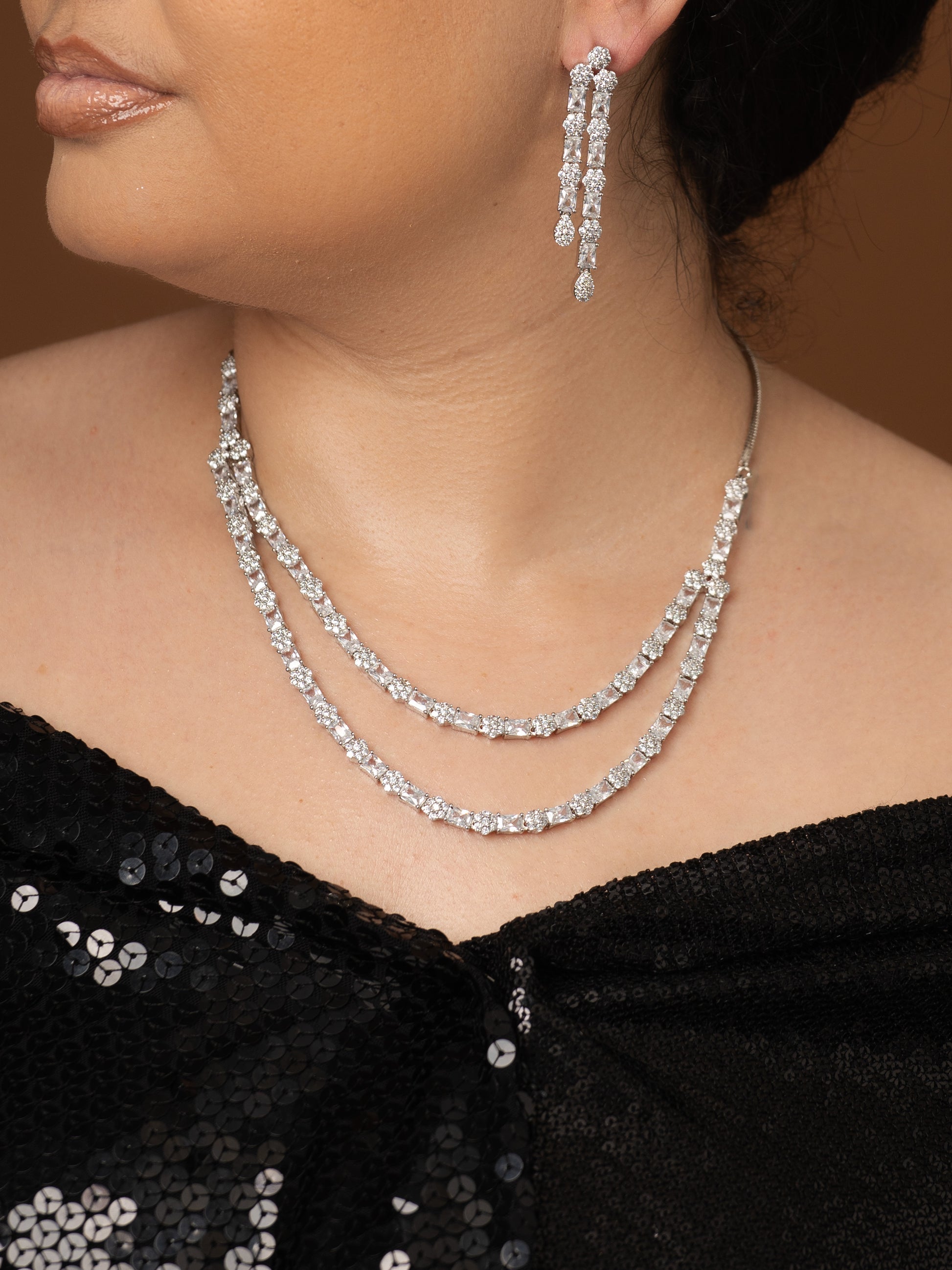 NAVYA Two Tier Cz Earring and Necklace set.