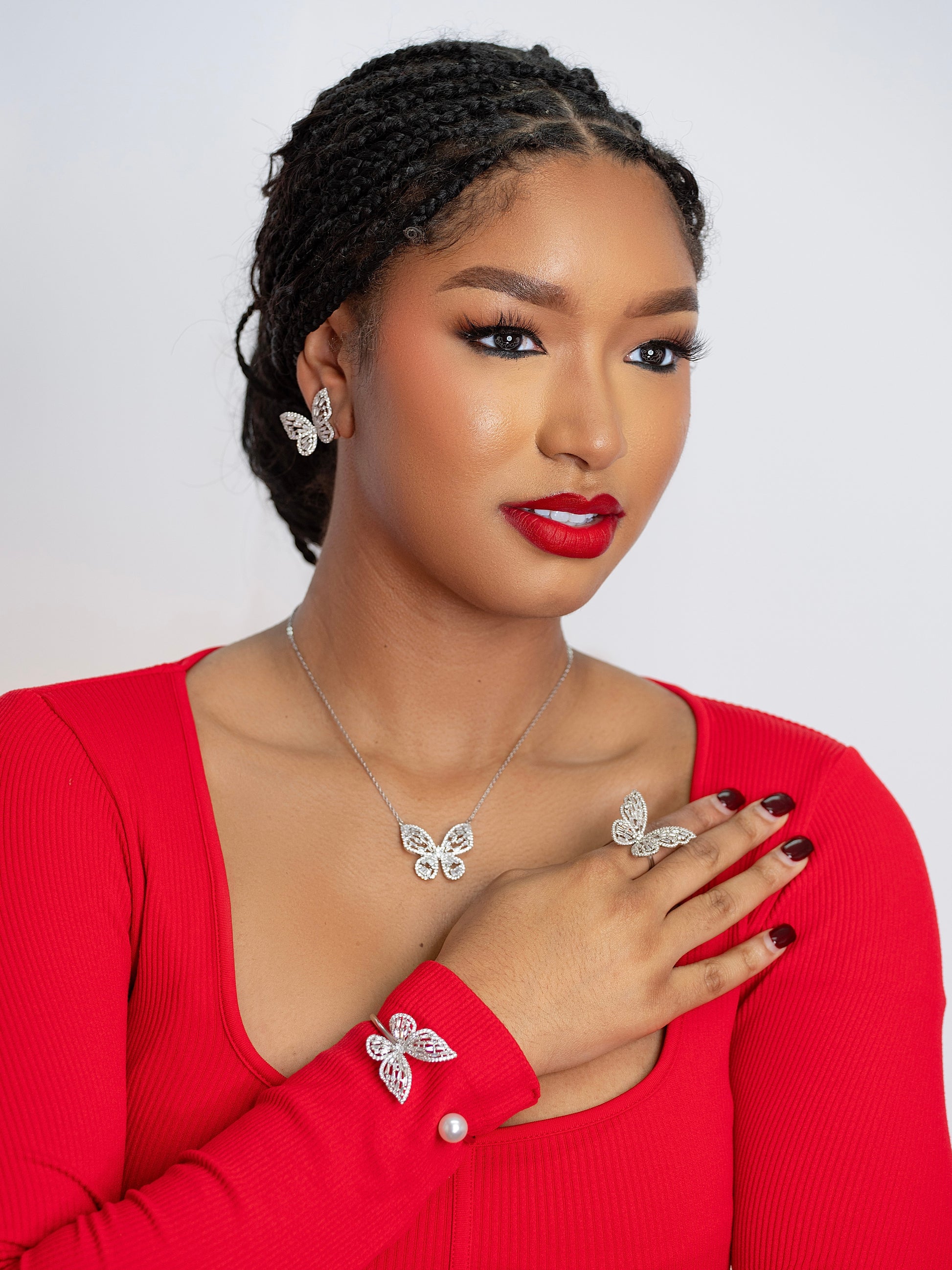 Enhance your style with the exquisite Octavia 4pcs Butterfly Set, adorned with sparkling cubic zirconia gems. This versatile collection allows for effortless mixing and matching, ensuring you always look your most elegant and refined.