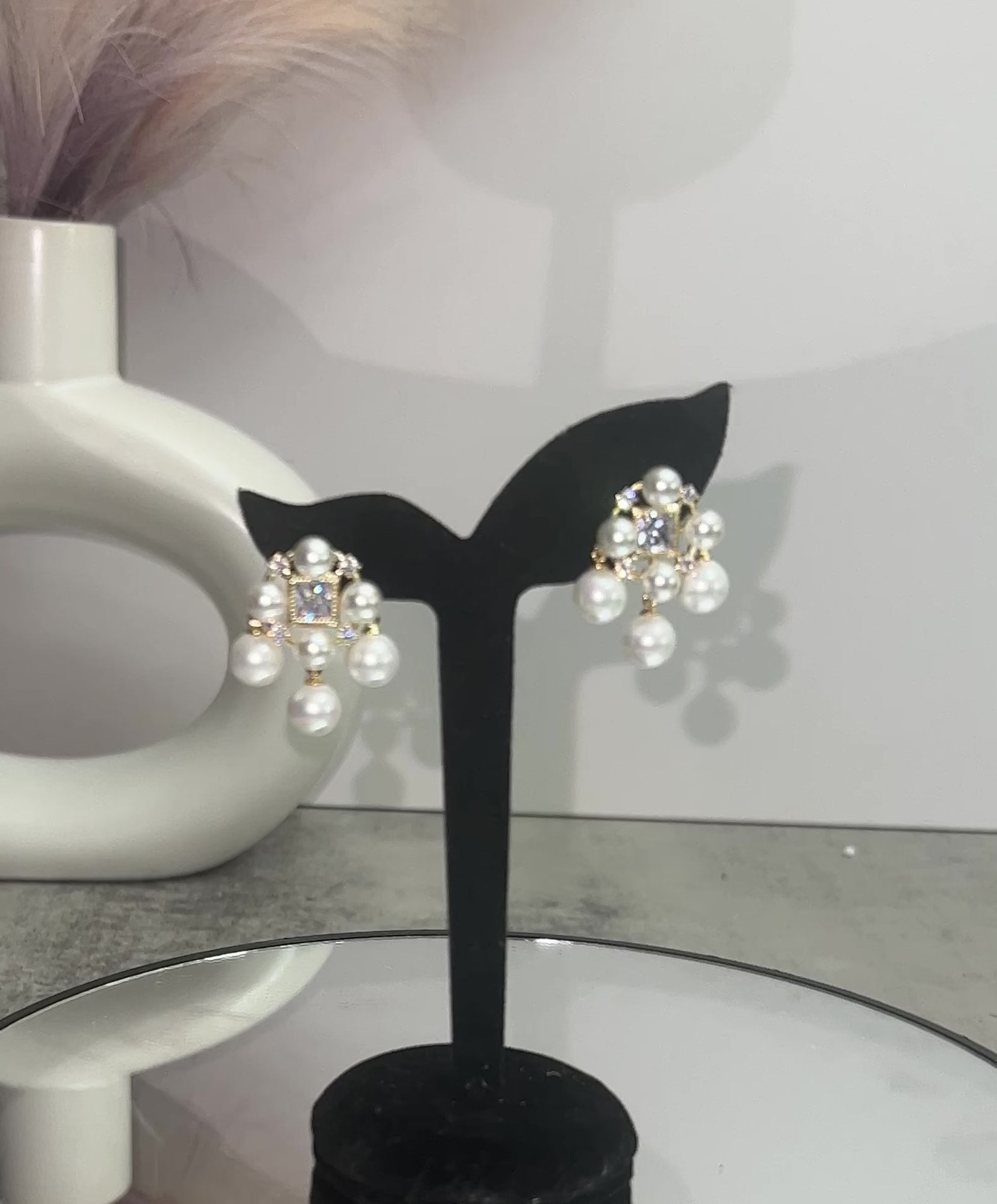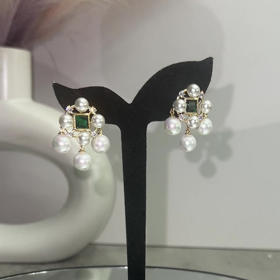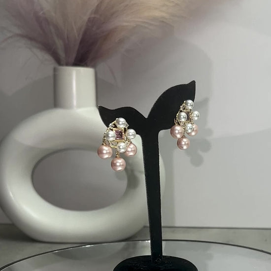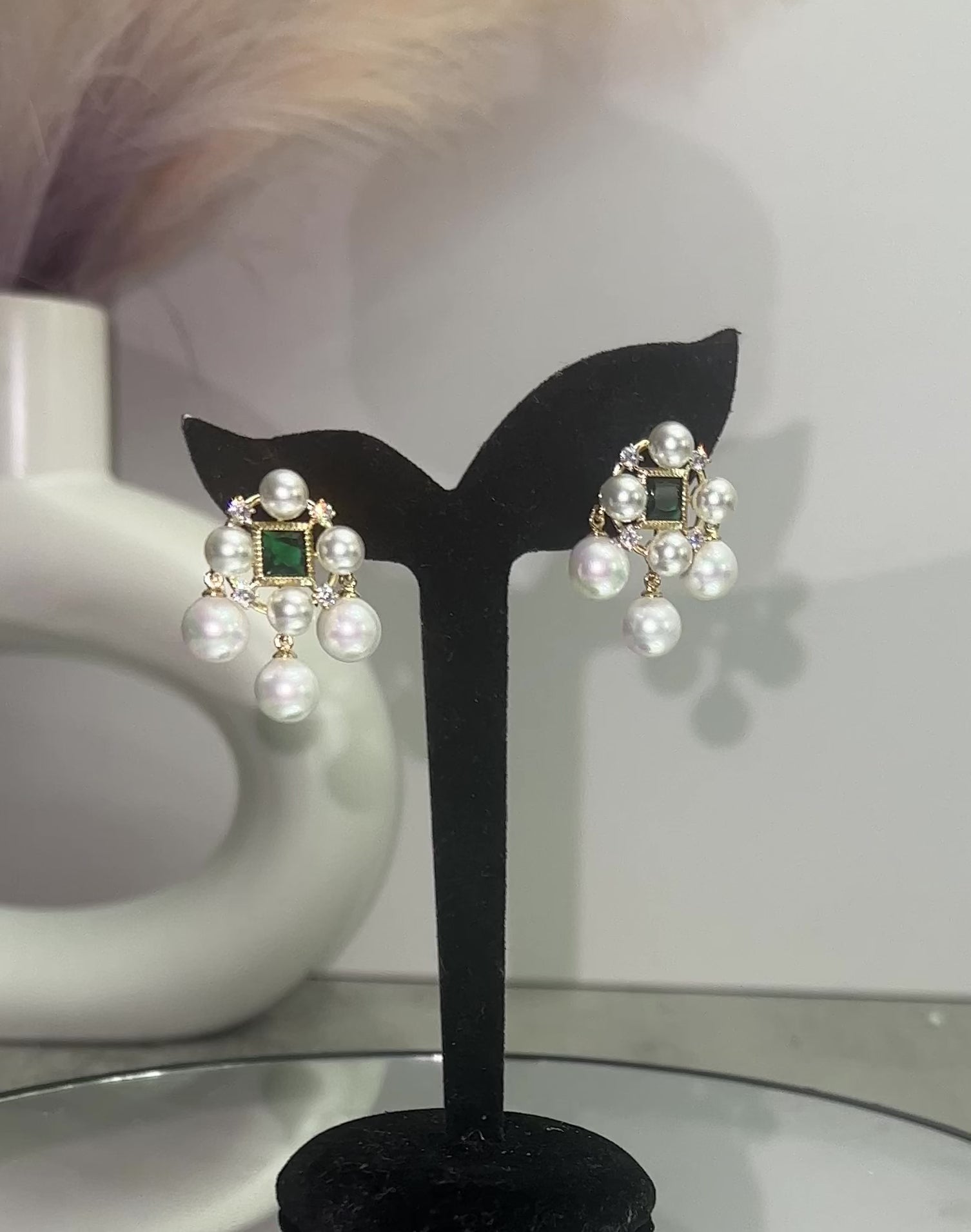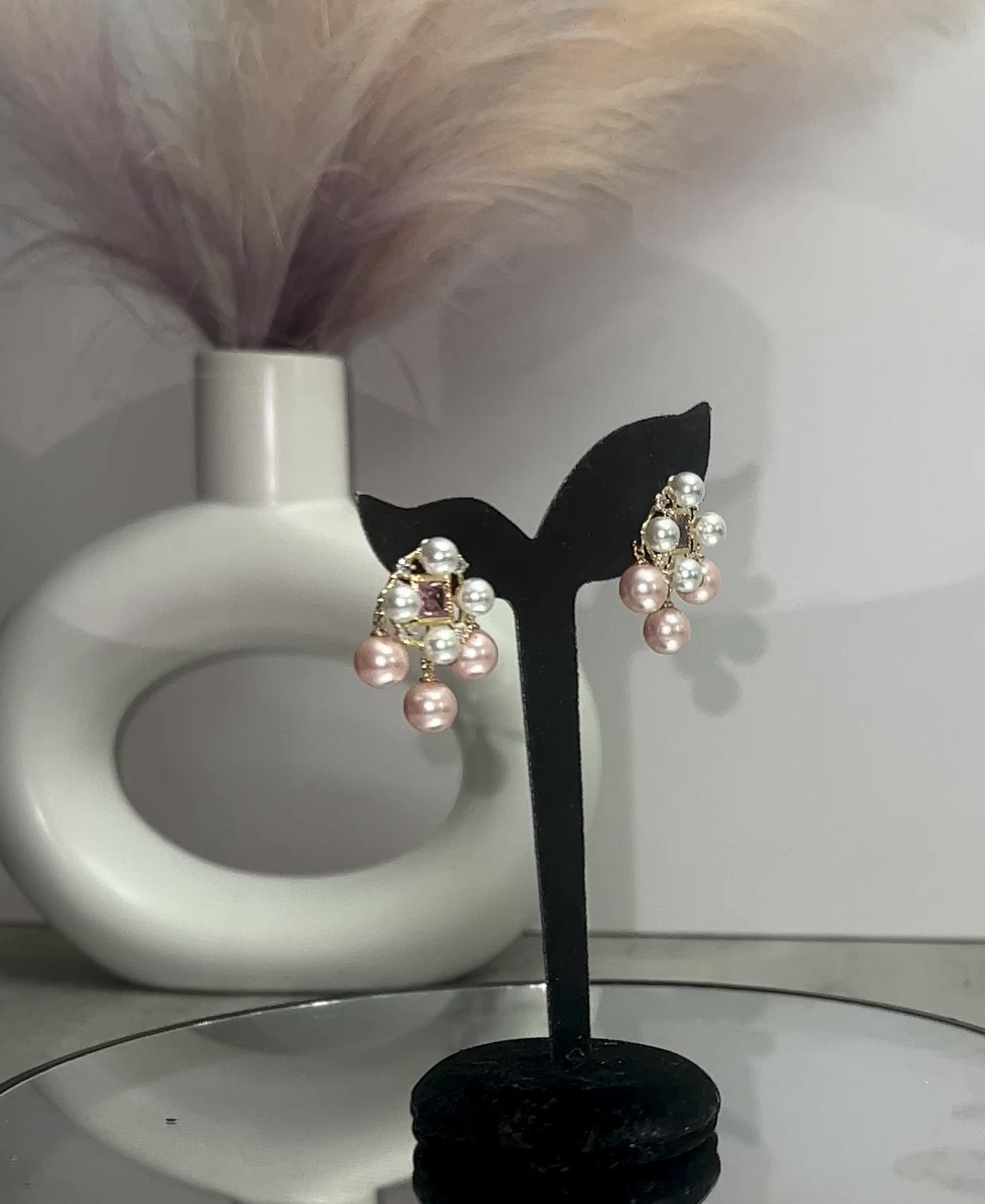 These timeless stud earrings combine pearls and stones for a classic, sophisticated look. Boasting three different colors in green ,pink and white . They l make the perfect accessory for any event. A classic design that will last a lifetime.
