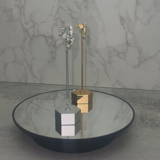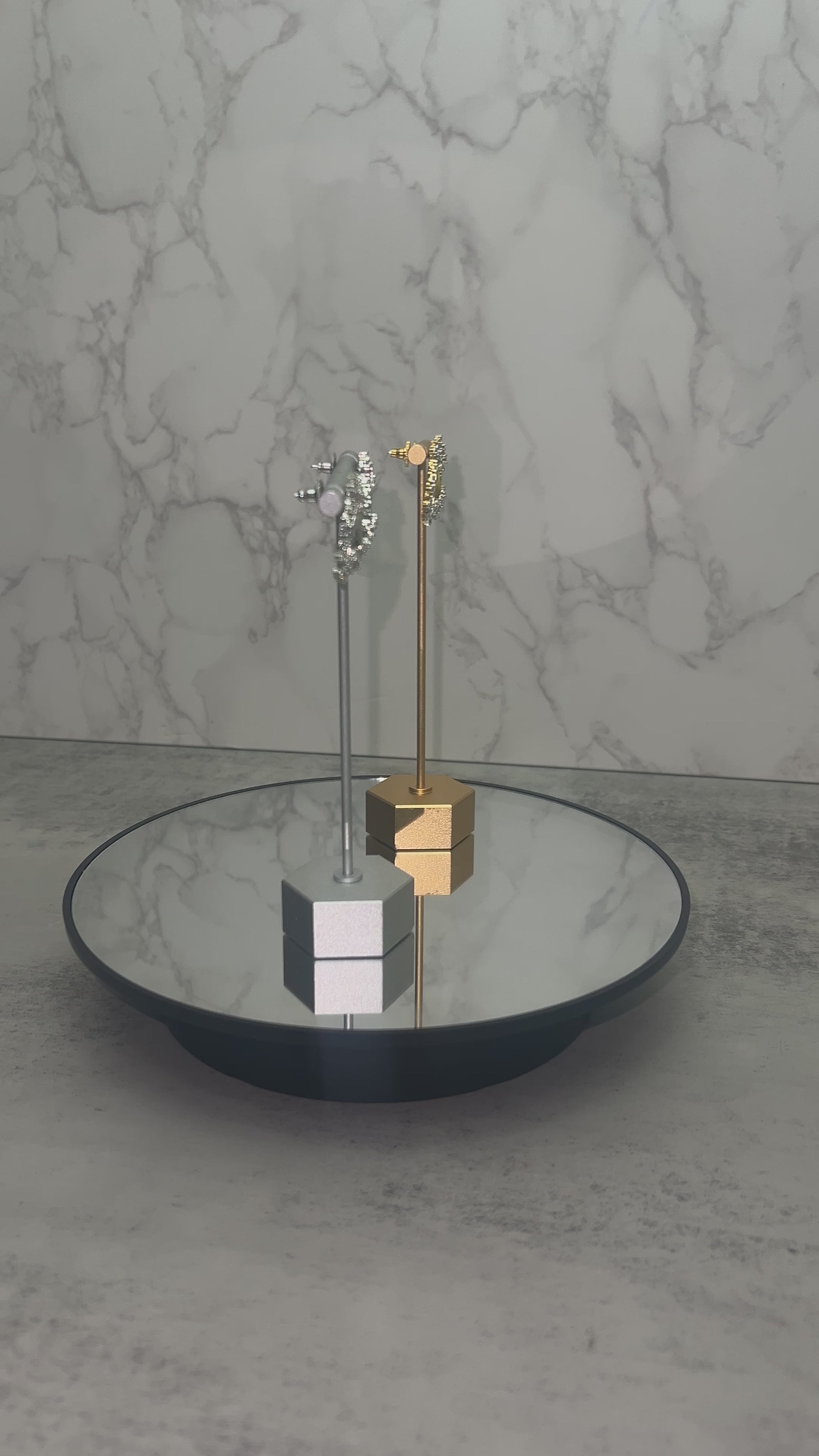 These Rhea earrings feature a beautiful Indian design and are available in both silver and gold. With their versatile stud earring style, they can be easily dressed up or down, making them perfect for everyday wear. Elevate any outfit with these elegant and stylish earrings.