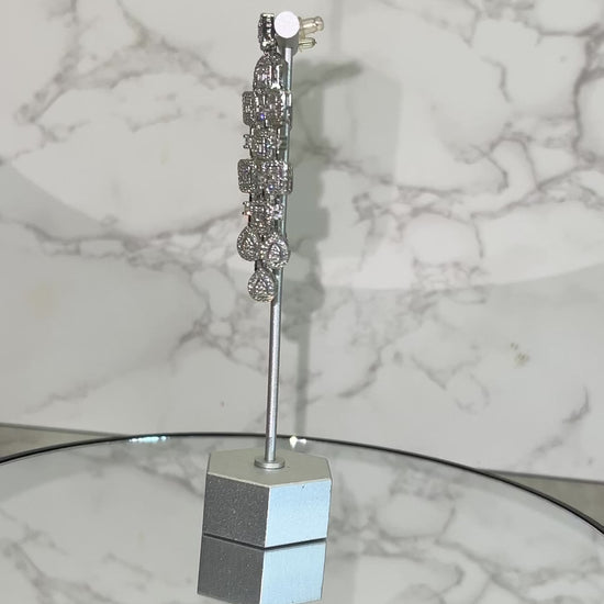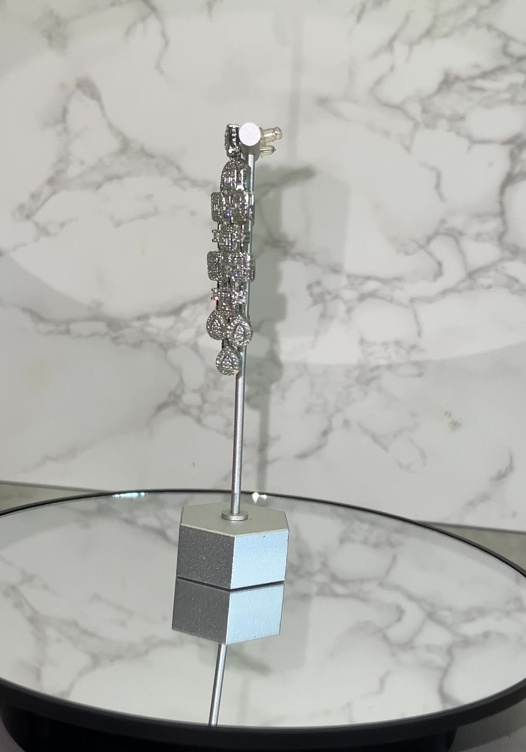 Elevate your style with our Shuna chandelier CZ earrings. These lovely earrings will add a touch of elegance to any outfit, with their delicate and dangling design. Be the center of attention with these exclusive earrings that will make you shine like a star that you are