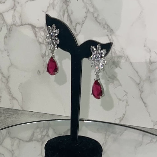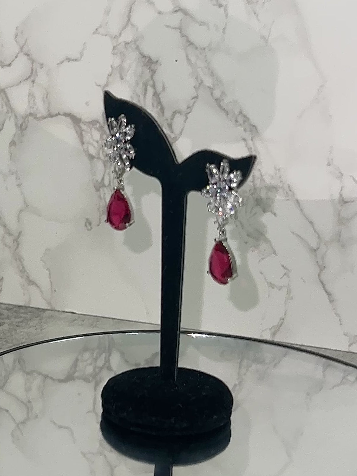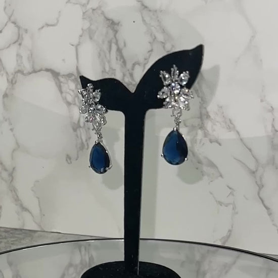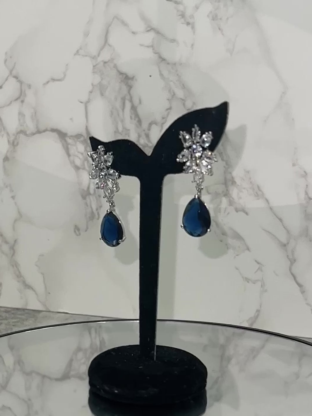 The TEJ CZ drop earrings offer a premium and timeless style, with vibrant options of red and blue. Made with the highest quality materials, these earrings are perfect for adding a touch of elegance to any outfit. Elevate your style with the TEJ CZ drop earrings