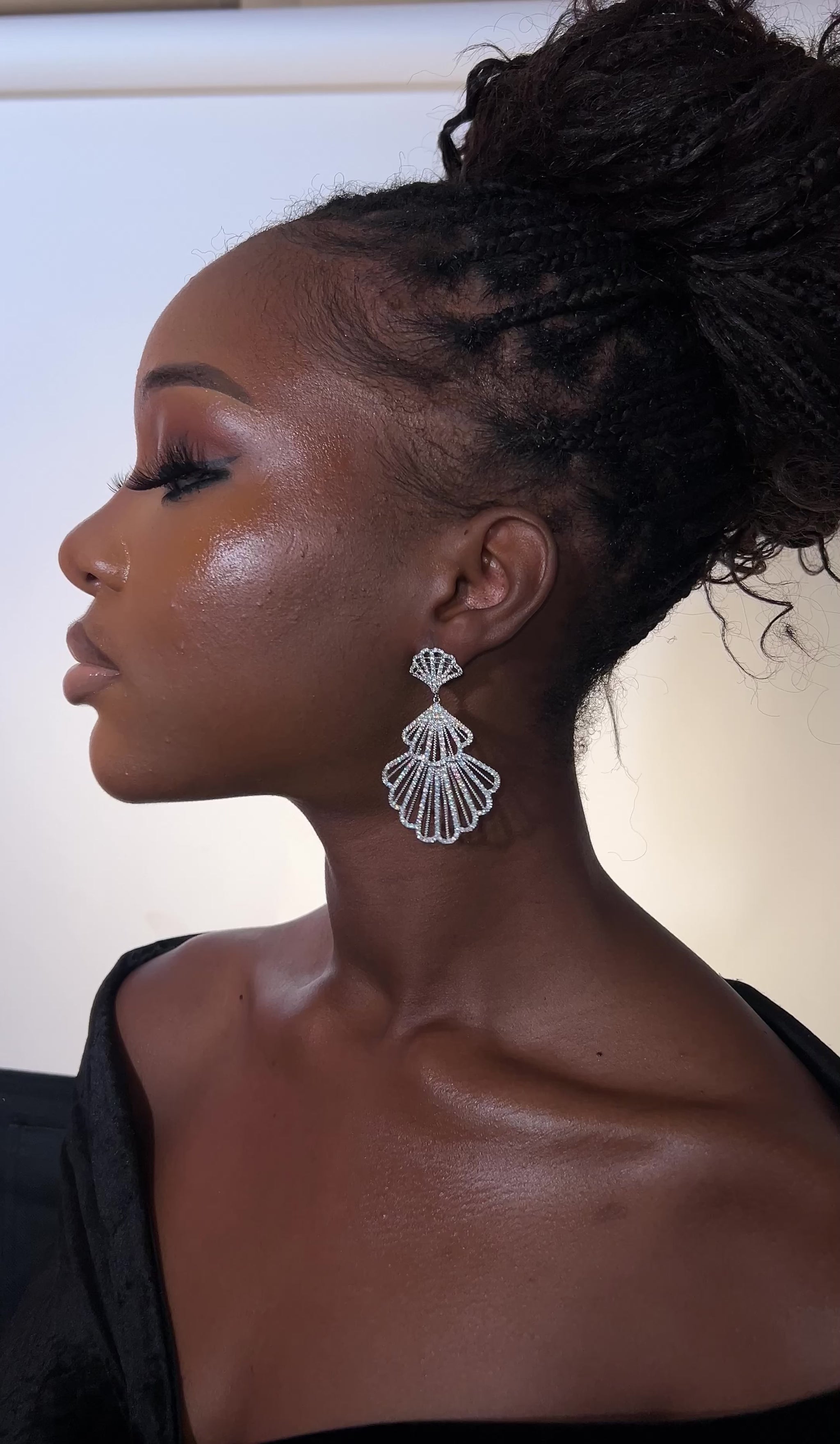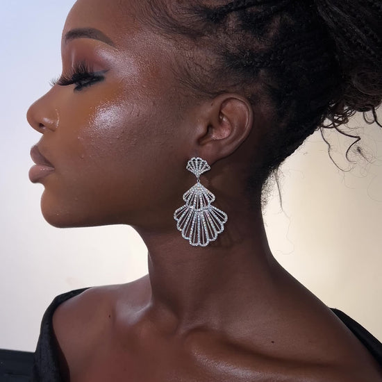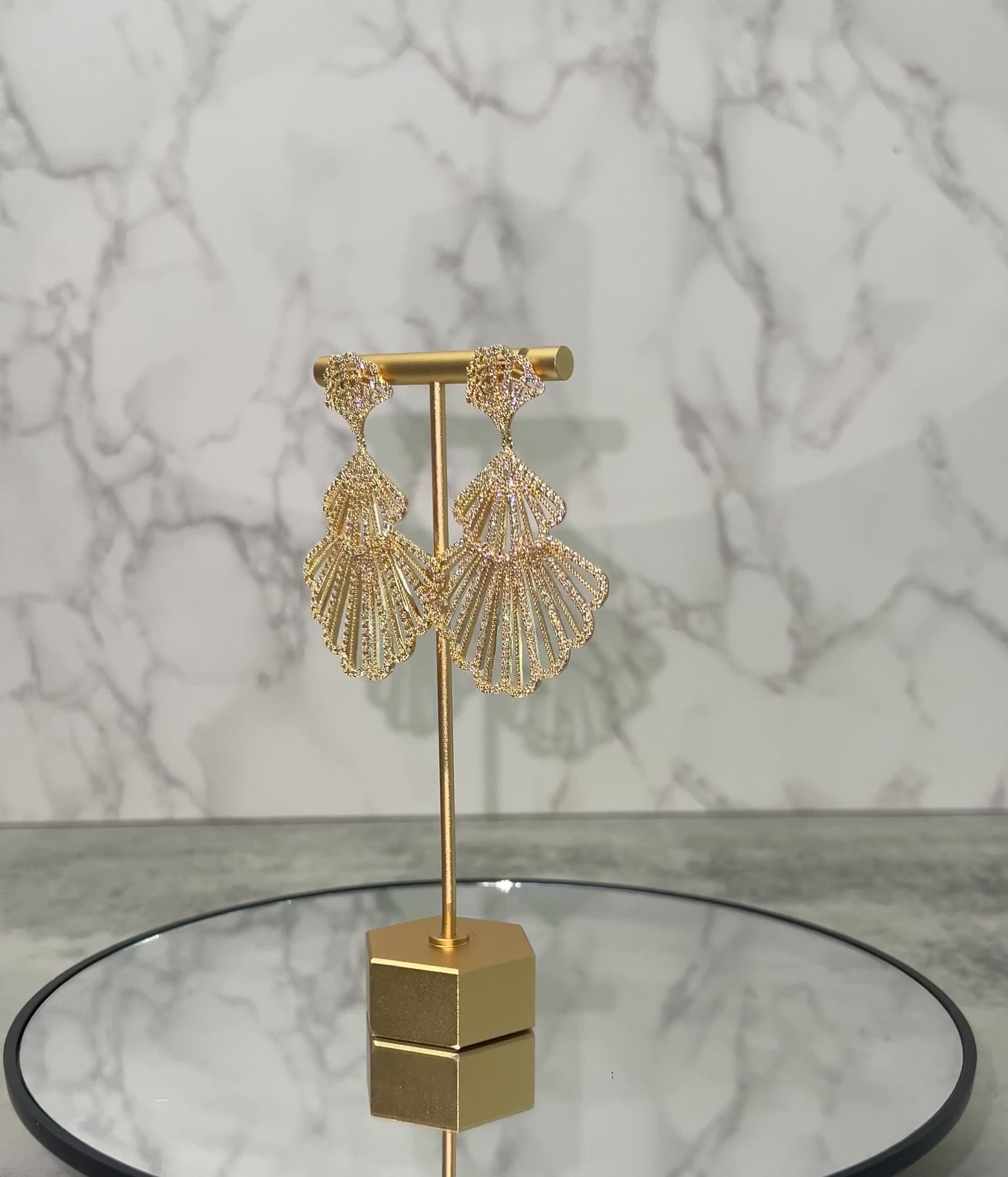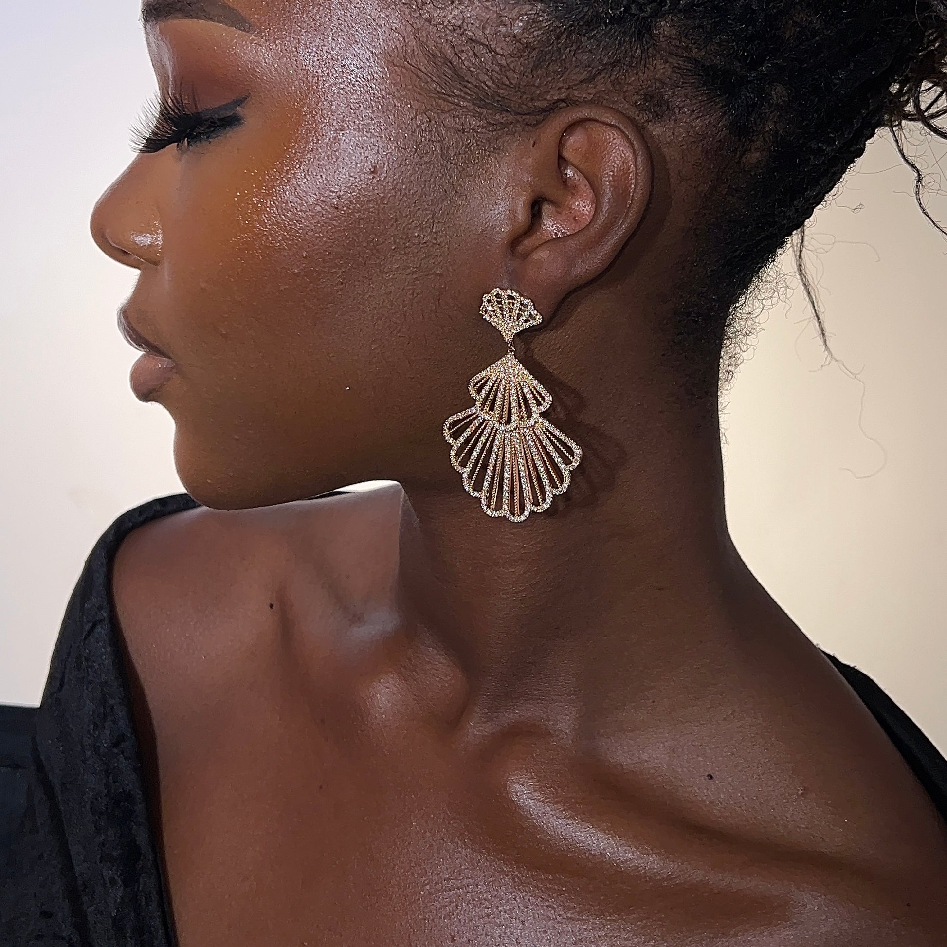 These Neema Cz earrings are a show-stopper with their unique and attention-grabbing shape. Designed with expertise and precision, they add an elegant touch to any outfit. Crafted with sparkling Cz stones, they are a perfect accessory for any occasion. A must-have .