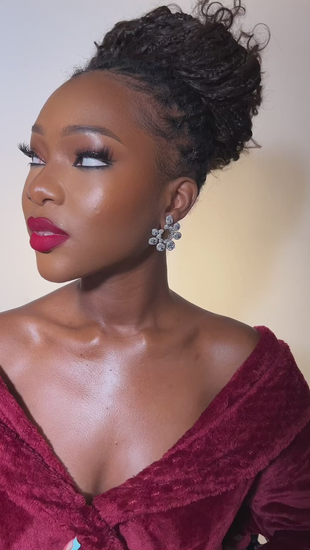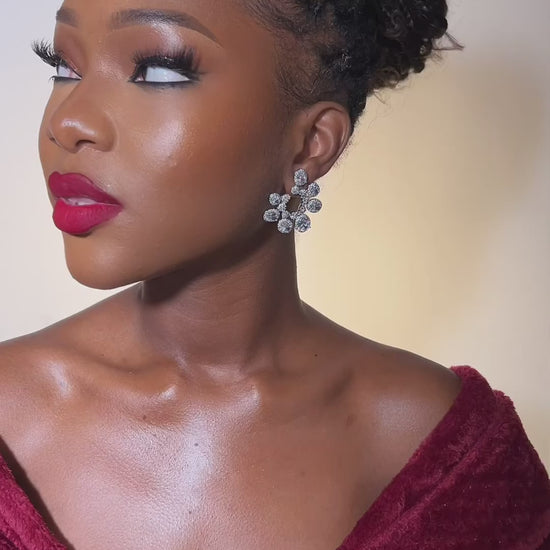 Round cluster CZ stud earrings . Exudes luxury for special occasions and bridal . Comes in white and ruby stones "Indulge in the opulence of our Luxia Large stud earrings. Featuring a round cluster of sparkling CZ stones, these earrings exude luxury and sophistication, perfect for special occasions and bridal wear. Available in stunning white and ruby stones, and can be styled in so many ways